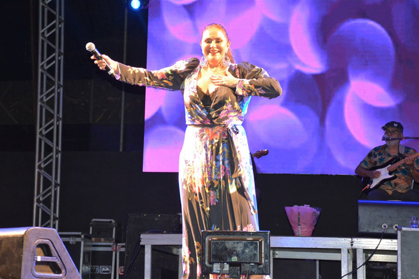 Plena em um vestido preto de seda e estampas de flores, e aplique no cabelo, Fafá fez uma viagem na sua carreira, misturando grandes sucessos, como “Vermelho”, canção que abriu o show, “Foi Assim” e “Meu coração é brega”, que fez público levantar-se para dançar.