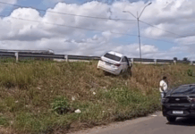 Mulher passa mal, perde controle do carro e sobe em barranco na Avenida de Contorno